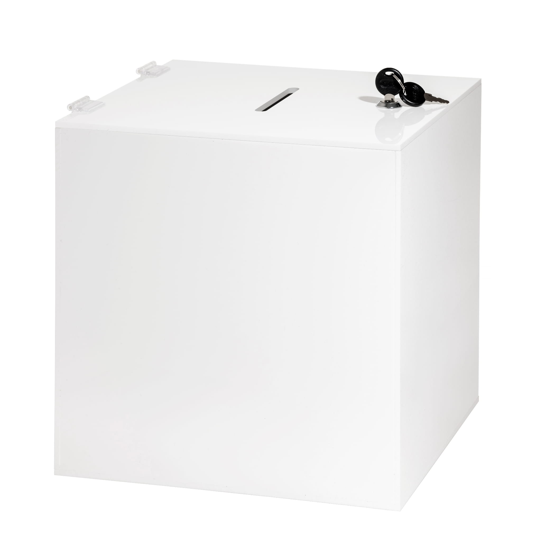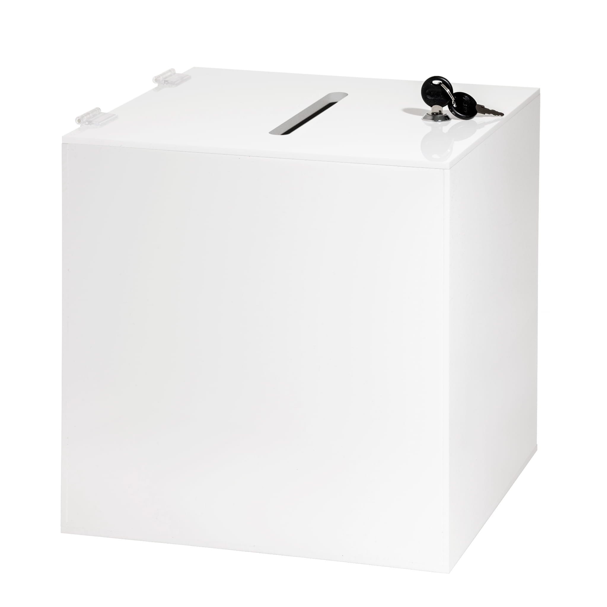 Ta skarbonka-urna wykonana z trwałego i białego PMMA o grubości 3 mm to idealne rozwiązanie do bezpiecznego przechowywania różnych przedmiotów, takich jak monety, banknoty, karty czy ankiety. Jej wymiary 15x15x15 cm zapewniają wystarczającą przestrzeń, aby pomieścić wiele różnych przedmiotów.